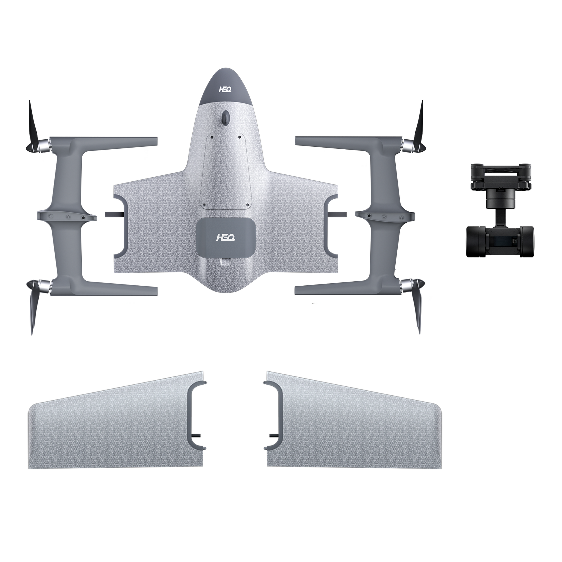 NOTE: SWAN K1 PRO PNP includes: main body (including a flight controller, a electronic speed controllers, a GPS, a airspeed sensor, a WiFi module), a pair of arms, a pair of wings, a counterweight , a set of propellers and a G-Port gimbal.