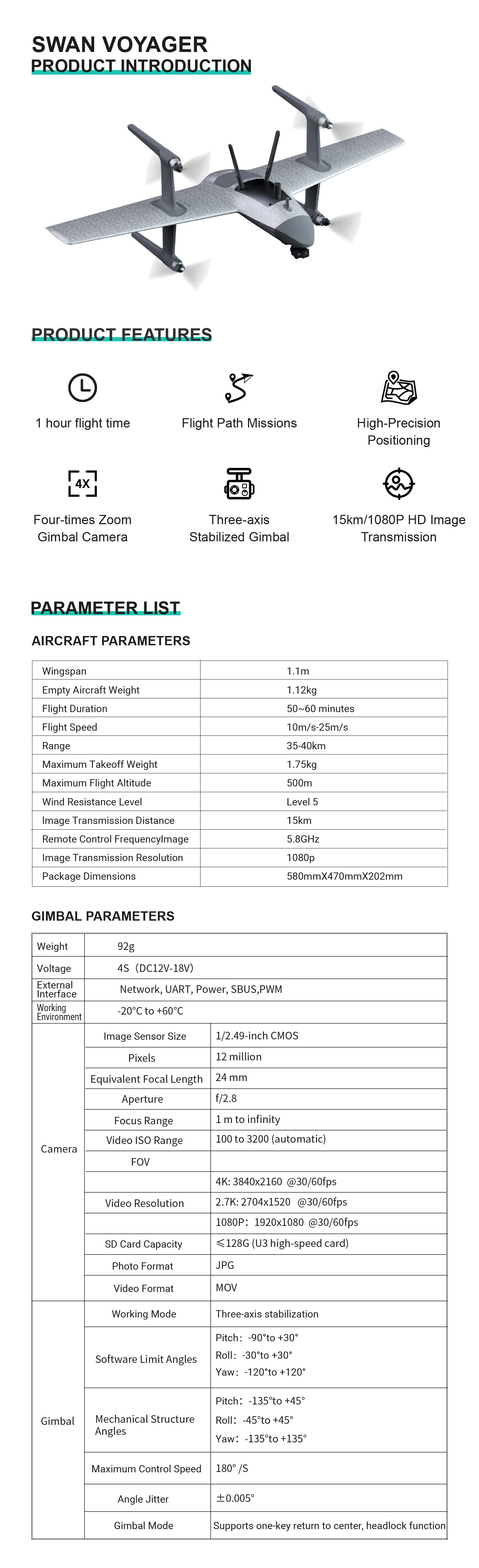 2. Equipped with G12 three-axis gimbal camera, stable shooting